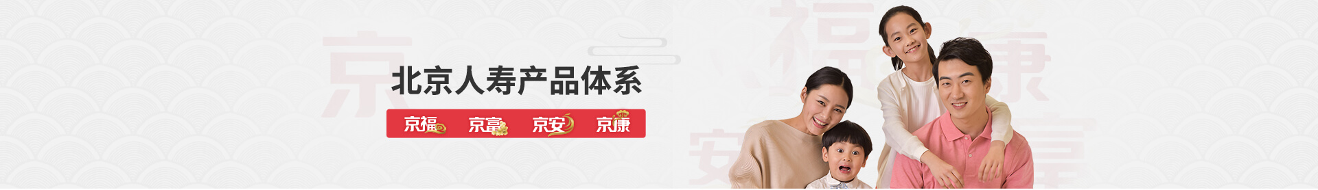 北京人寿秉承“北京人寿,身边亲人”的服务宗旨,着力于建设满足客户养老传承、理财规划、意外保障、健康保障等多维度、多层次需求的全方位产品体系。公司积极创新,推出“京福”养老传承系列、“京富”年金产品系列、“京安”意外保障系列、“京康”健康保障系列等四大个人产品系列,以及服务于企业员工,为企业提供周到完善的员工福利计划的团体产品系列。